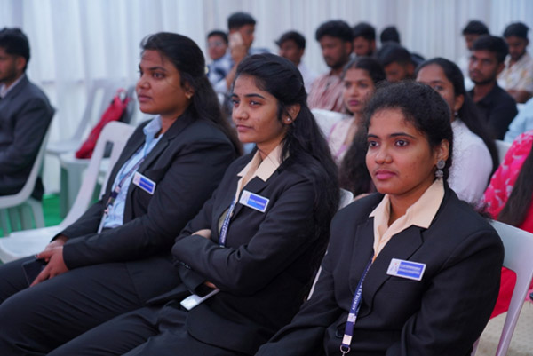 The Induction program was amplified by the presence of distinguished guests whose insights added layers of inspiration to the proceedings. Shri Datla Hanumantha Raju Garu, a prominent Company Secretary and Chairman of PMC Trust, enlightened the students on the essence of professionalism, ethical conduct, and leadership qualities indispensable in today's dynamic corporate milieu. Shri V. Raj Kumar, an eminent scientist from DRDL Hyderabad, captivated the audience with reflections on scientific innovation, the relentless pursuit of curiosity, and the transformative role of research. The address by Dr. N. Ramakrishna Reddy, Deputy Vice President of TATA AIG General Insurance, highlighted the paramount importance of risk management and resilience, emphasizing the need for adaptability in personal and professional spheres.