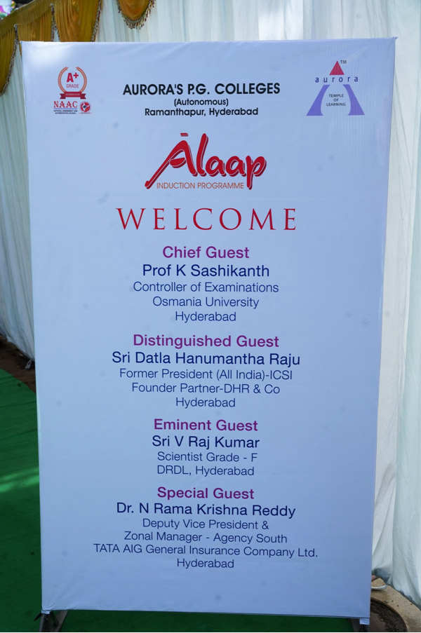Inspiring speeches by Aurora Group Chairman Mr. Anudeep Aurora and Director of Aurora's PG Colleges Dr. Madhavi Madireddy, reinforced the institution's values and the role of lifelong learning. Their words urged the new entrants to embrace challenges with enthusiasm and uphold the rich legacy of Aurora. Transparency and academic rigor were emphasized by Dr. P. Shirisha, Professor and Head of Management, who elucidated the autonomous-designed MBA and MCA program structures, demonstrating alignment with industry demands, curricular flexibility, and relevance. Dr. D. Pavan Kumar, the Controller of Examinations, unveiled the Innovative Scheme of Assessments which encourages creativity, critical thinking and continuous evaluation—hallmarks of the institution's progressive academic vision.