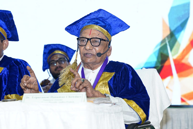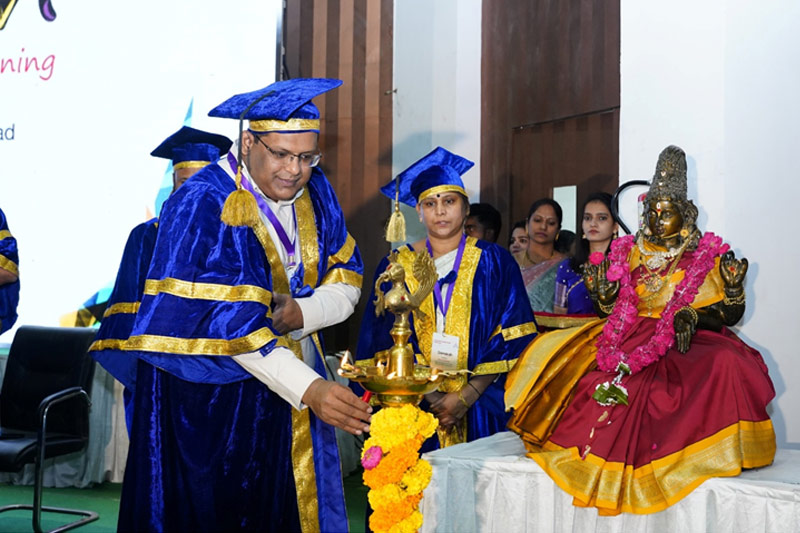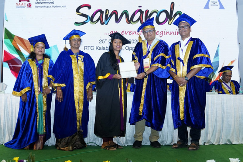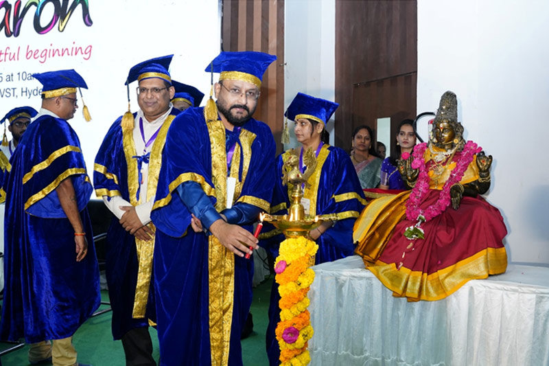 Esteemed personalities from academia and industry graced the occasion, with the President, Prof. B Lavanya, Dean-UGC Affairs, Osmania University, bestowed the degrees on the MBA and MCA students of the institution and presented Gold Medals to the meritorious students of the MBA and MCA programs and the overall toppers. The Chief Guest, Professor Kumar Suresh, Dean- Academic and Research at the National Institute of Education Planning and Administration (NIEPA) provided profound reflections and critical insights on research. The Distinguished Guest Dr Sridhar Guda, Professor in Marketing from the Indian Institute of Management, Kozhikode, presented stimulating observations on the dynamic fields of management and marketing. The special guest, Sri Tej Kumar Vangaveti, Director-Digital and Data Technologies at Novartis India, pointed out the key role of technology, continuous skill development and opportunities in the AI environment. The session also featured Padma Shri Awardee, Chairman of Pragna Bharati and Former IT Adviser to the Government of Andhra Pradesh, Dr Tripuraneni Hanuman Chowdary, who enlivened the event with his impactful address.