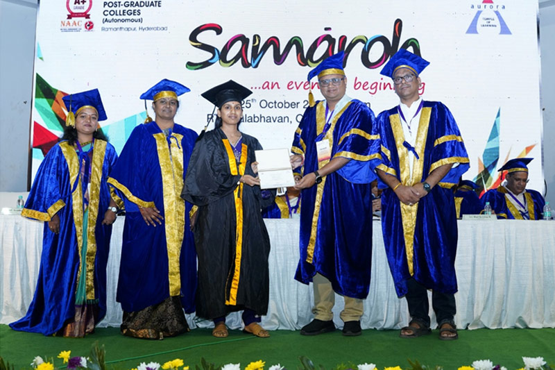 Mr Anudeep Arora, the Chairman of Aurora Group of Colleges, shared leadership lessons rooted in perseverance and ethics, reflecting Aurora's journey and values. The spiritual highlight was the presence of ‘Mahasahasravadhani, Pravachana Kiriti’ Dr Garikapati Narasimha Rao, who inspired students with profound reflections on character, discipline, kindness and guiding principles for their future. As pioneers of the first autonomous batch of Aurora, the graduates stand ready to explore new horizons, grounded in knowledge, morals and resilience. Aurora Ramanthapur wishes them a future filled with success and happiness!